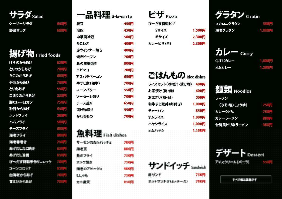 詳しくはお店でどうぞ