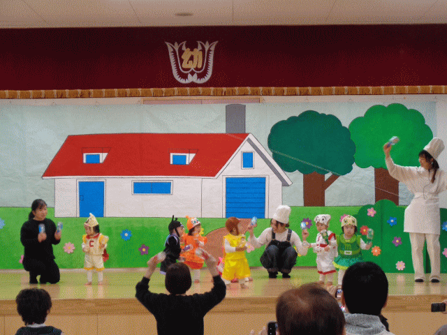 今日は、8月生まれの未満児誕生会がありました。いちご組さんの自己紹介では大きくなったら〇〇になりたい、さくらんぼ0・1組さんは好きなものを上手に発表してくれました。そして、みんなで歌のプレゼントをしたり、先生の出し物を見たりと楽しく過ごすことができました。誕生児のみんな良い1年にしてね♪